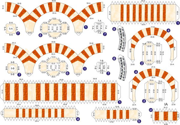 7.- Modillón de rollo: baquetones cilíndricos en forma escalonada cuya función es aumentar de forma gradual el ancho de las pilastras sin rompimientos abruptos.