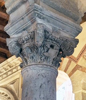 5.- El cimacio es una estructura troncopiramidal situada entre el arranque de los arcos por un lado y el de los pilares por otro, es de origen bizantino. Ofrece dos tipologías diferenciadas, los mencionados troncopiramidales y los de estructura cruciforme.