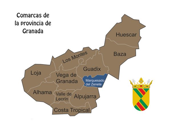 Identificado en la actualidad como Mancomunidad de Municipios “Marquesado del Zenete” este histórico señorío jurisdiccional, se halla integrado en la comarca granadina de Guadix, una de las diez que conforman la provincia de Granada junto con la de Huescar, Baza, los Montes, Loja, Alhama, Costa Tropical, Alpujarra granadina, Valle de Lecrín y Vega DE Granada.
