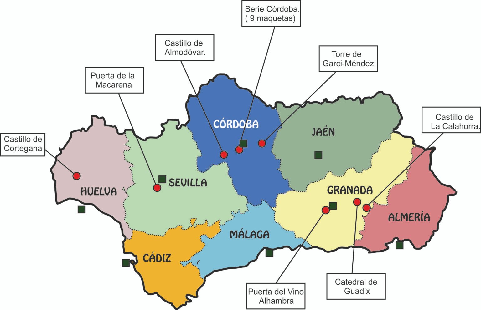 Cortegana. (Huelva). Sevilla Almodóvar del Río. (Córdoba). Córdoba. (11) El Carpio. (Córdoba). La Calahorra. (Granada). Guadix. (Granada). Granada