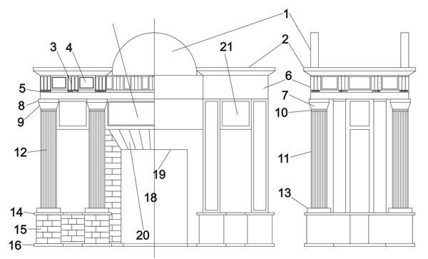 Frontón semicircular: Remate arquitectónico curvo situado sobre puertas, ventanas o fachadas.